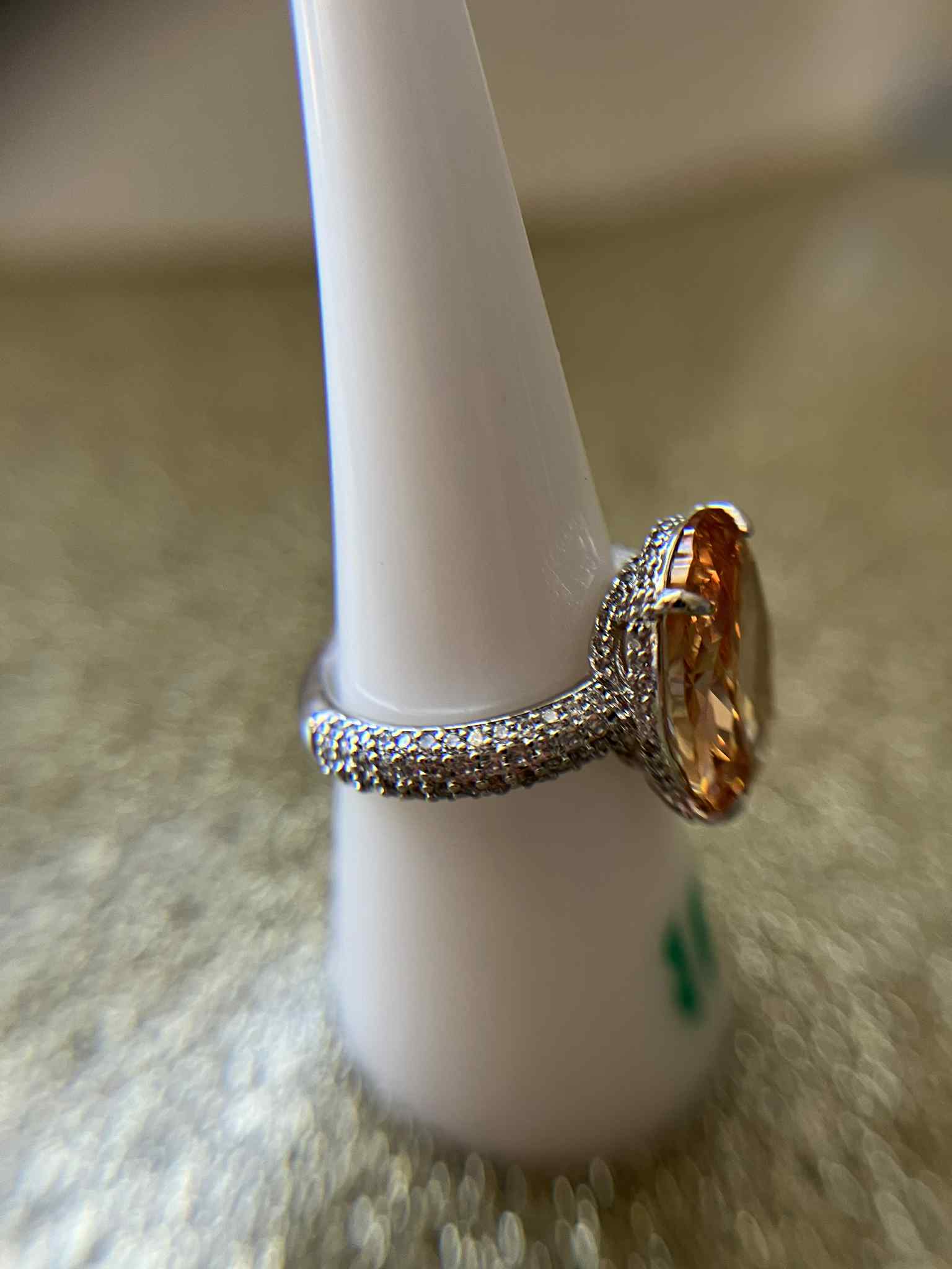 Smokey Topax Cubic Zorconia on rhodium plating.