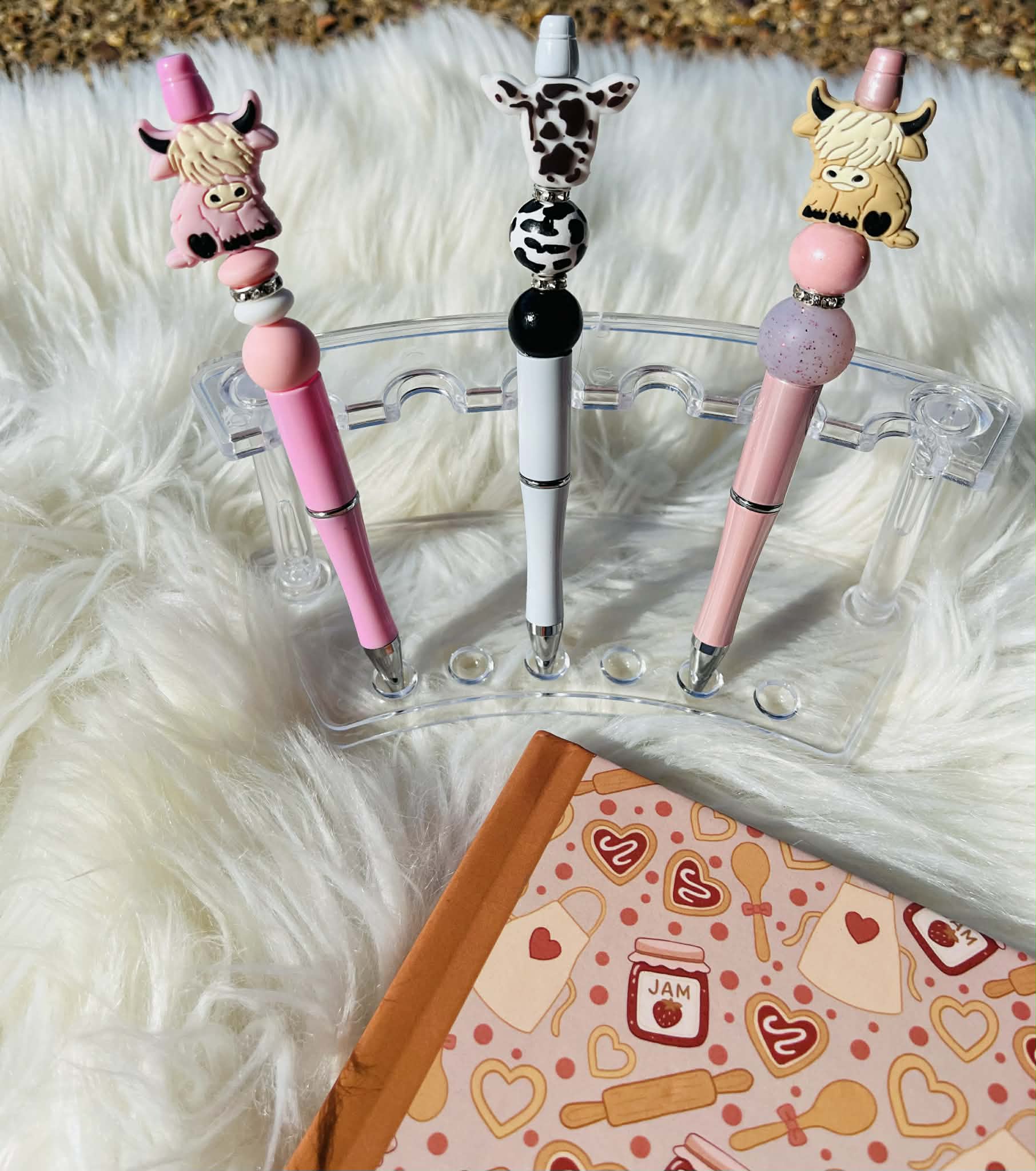 These are beaded pens that write in black ink. Each pen comes with a refill.
