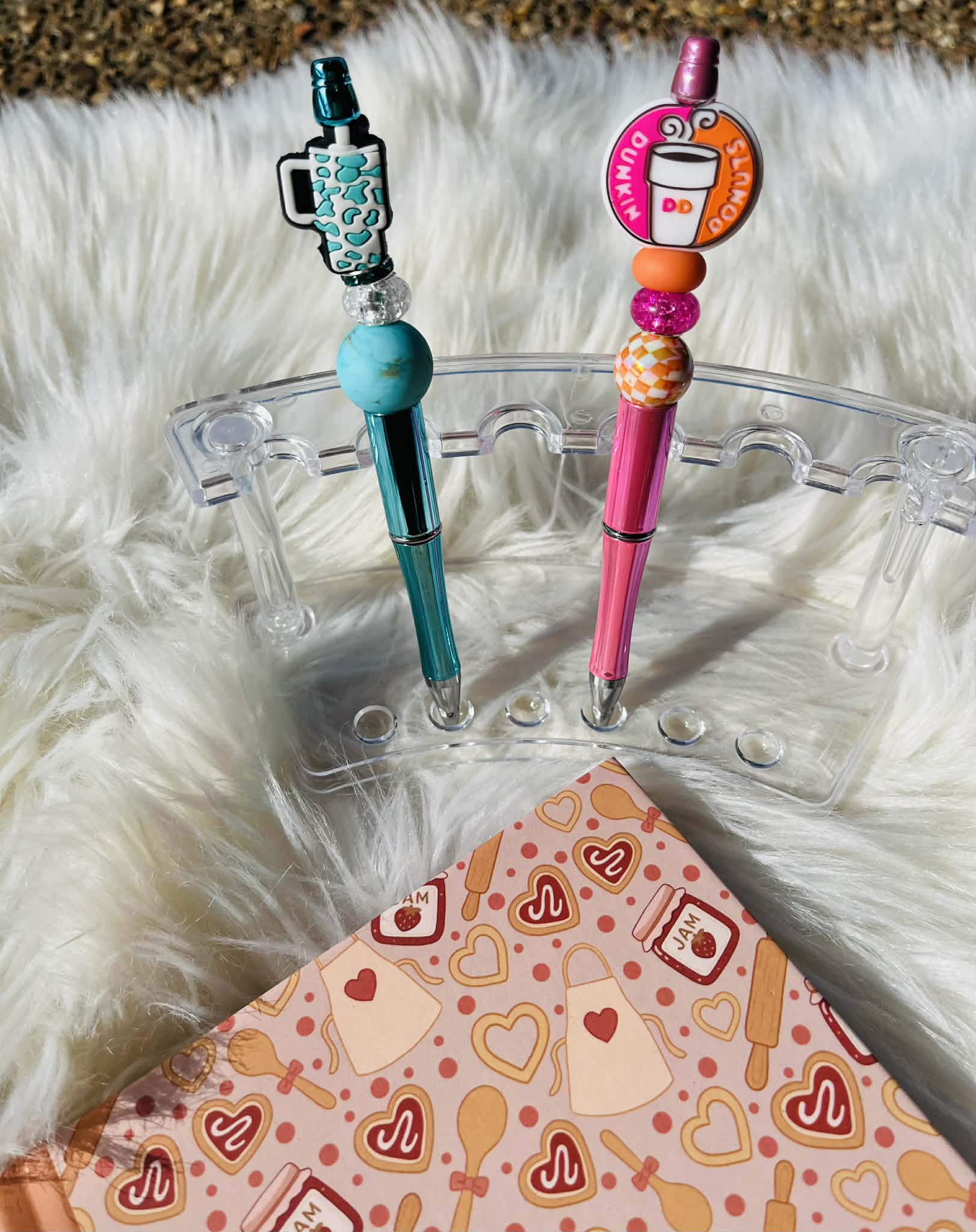 These are beaded pens that write in black ink. Each pen comes with a refill.