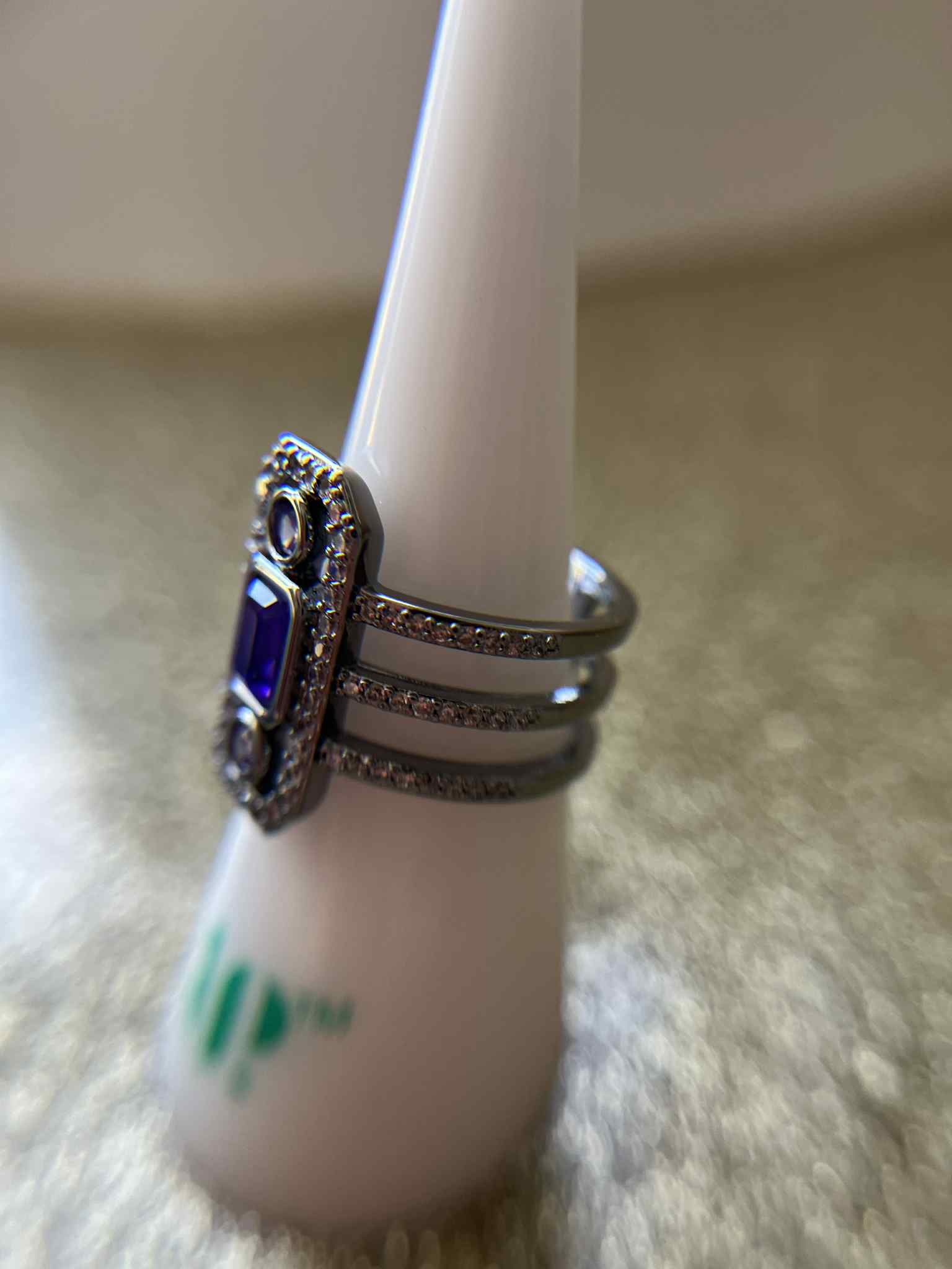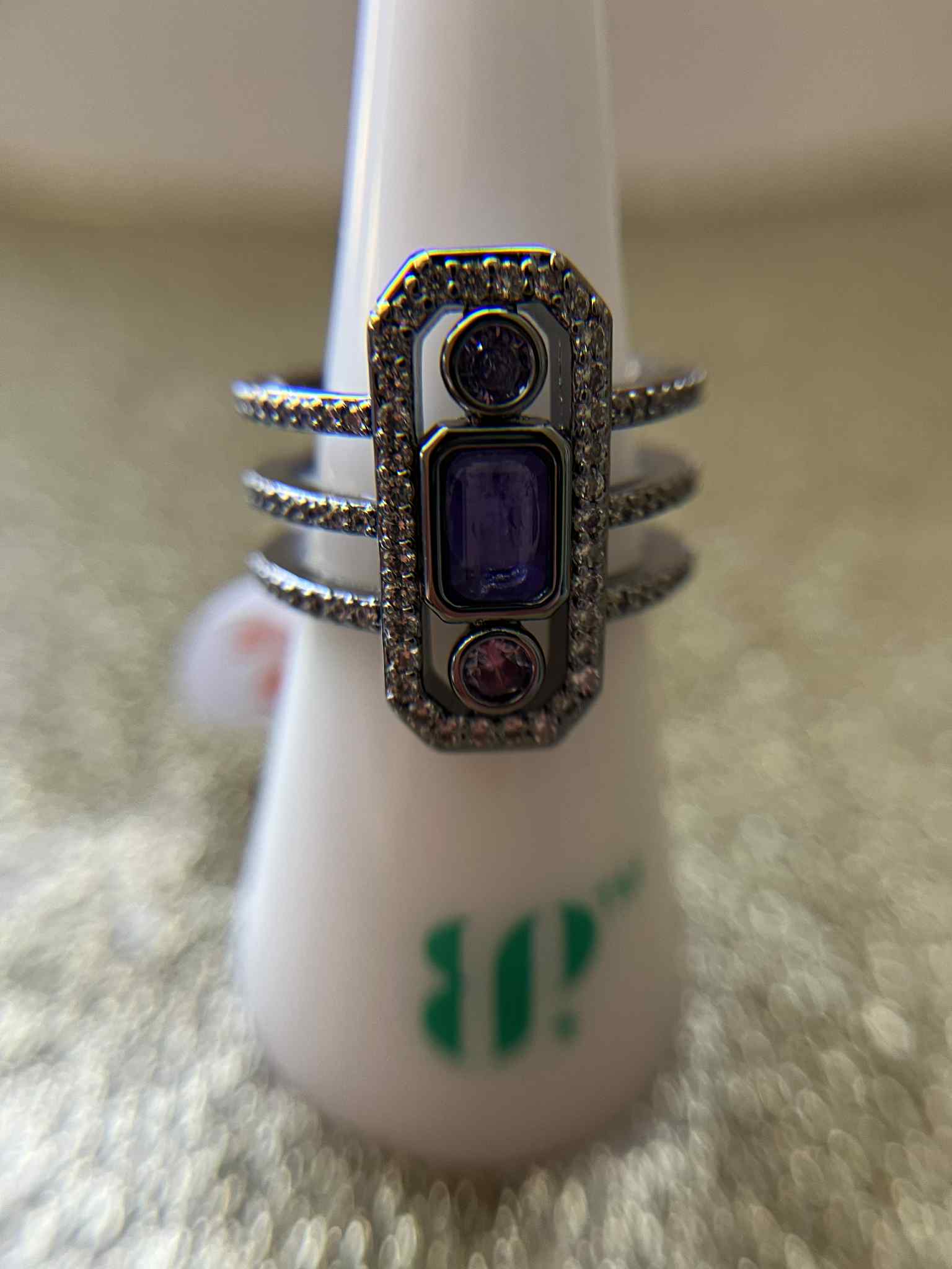 Lab-created Lavender Amethyst Fused with Genuine Quartz on Hematite Plating.